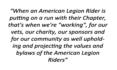 What does this mean to us at this time? When it's an American Legion Riders Post 259 Benefit Ride, we feel it's our responsibility as American Legion Riders to give our best effort to provide a safe ride for the public. Our Officers, Road Captain & Road Guards are always striving to provide a safe professional run that goes as smoothly as possible. Experience is everything to keep the public coming back.